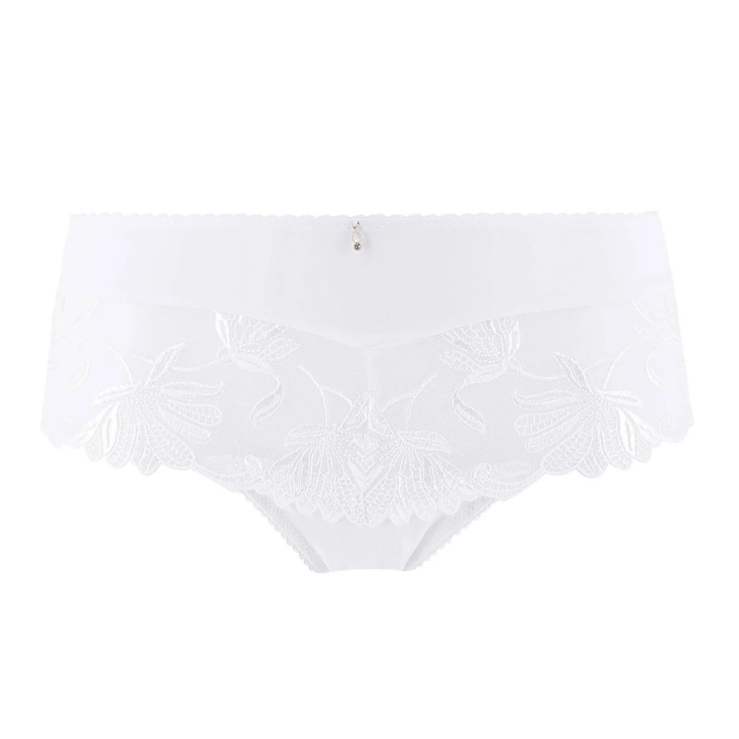 Ce shorty St.Tropez sexy de la ligne Lovessence Ă©pouse de sa coupe les courbes fĂ©minines et charnelles. Sensuel et glamour, le shorty offre un galbe parfait. Il prĂ©sente un bijou en Zamac dorĂ© sur le devant ainsi qu’un noeud pompon fabriquĂ© Ă la main derriĂšre. Galons brodĂ©e LycraÂź et rigide sur un tulle recyclĂ©.