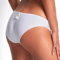 Ce slip BrĂ©silien de la ligne Lovessence prĂ©sente un bijou en Zamac dorĂ© Ă la taille ainsi qu’un noeud pompon fabriquĂ© Ă la main derriĂšre. Une coupe classique lĂ©gĂšrement Ă©chancrĂ©e. A l’arriĂšre les bords francs offrent une application sans dĂ©marcations sous les pantalons.