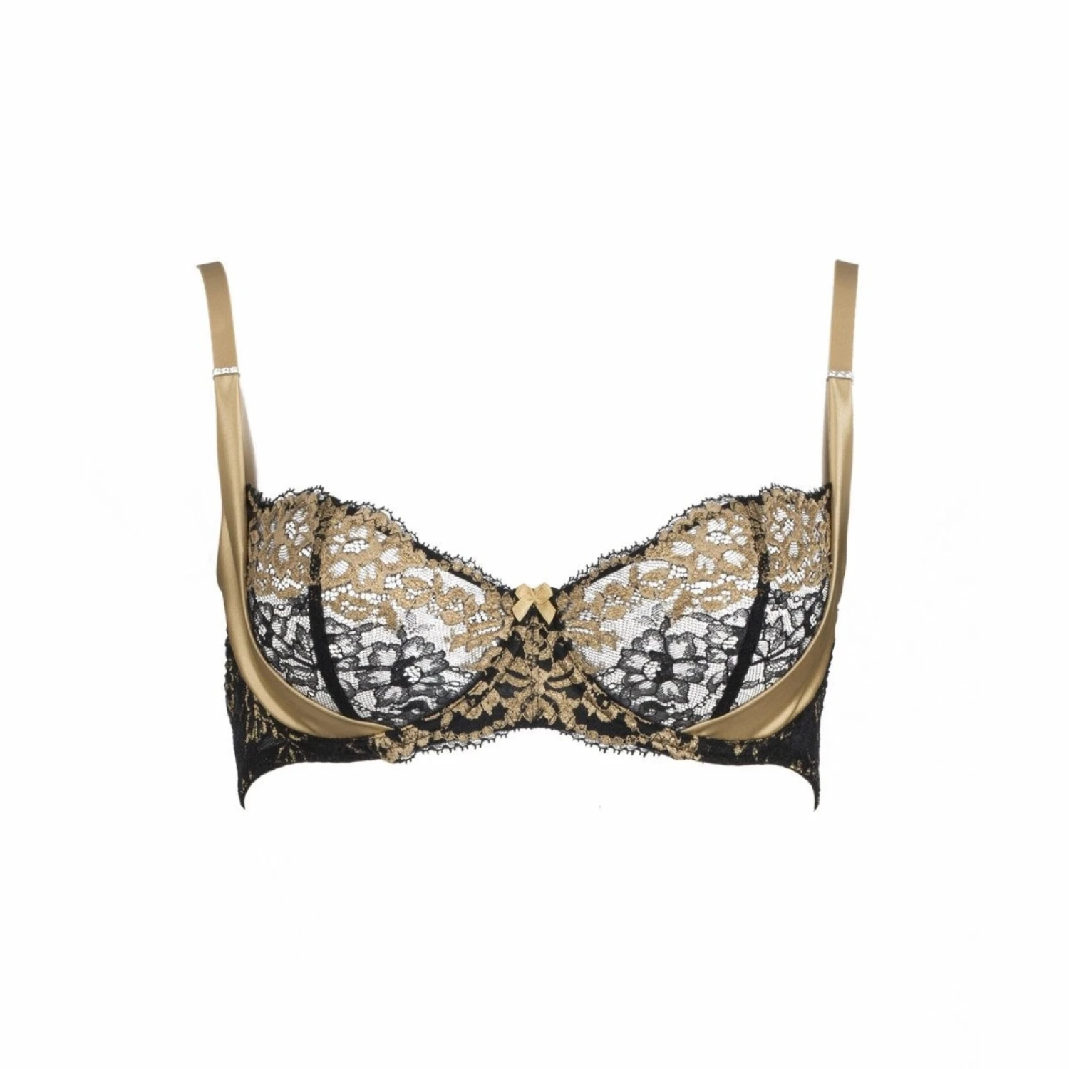 Cette saison, Aubade souffle une poudre d’or sur ses dessous. Le Tulle Noir brodĂ© contraste avec le satin or sexy, la dentelle dorĂ©e affirme son allure couture. Pour que le mot parure prenne tout son sens ce Soutien Gorge est Ă associer absolument avec le Tanga, le Slip Italien ou la Culotte Saint Tropez dans la mĂŞme collection Femme Glamour.