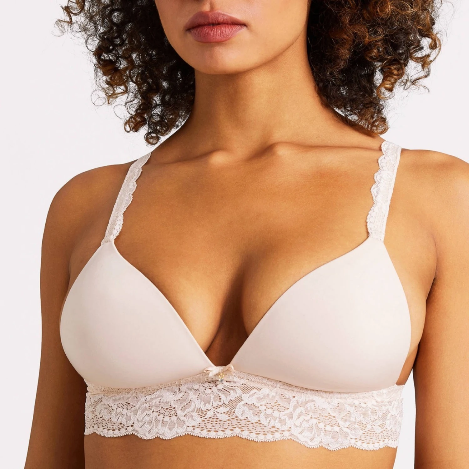Soutien-gorge triangle sans armatures AUBADE Sweetessence en maille douce et en somptueuse dentelle florale. RĂ©solument raffinĂ©e, cette ligne durable composĂ©e de fibres recyclĂ©es apporte un vent de fraicheur dans notre lingerie quotidienne. DotĂ©s de coques en mousse, les bonnets de forme triangle assurent un galbe naturel pour une poitrine très sĂ©duisante. De magnifiques empiècements de dentelle mĂŞlant fils mats et brillants se dĂ©posent dĂ©licatement sur la basque et les bretelles. Un petit nĹ“ud satinĂ© ornĂ© d’un bijou illumine l’entre-bonnets avec charme. L’Ă©lastique en tour de dos procure une meilleure tenue ainsi qu’un bien-aller absolu. Bretelles extensibles et rĂ©glables.