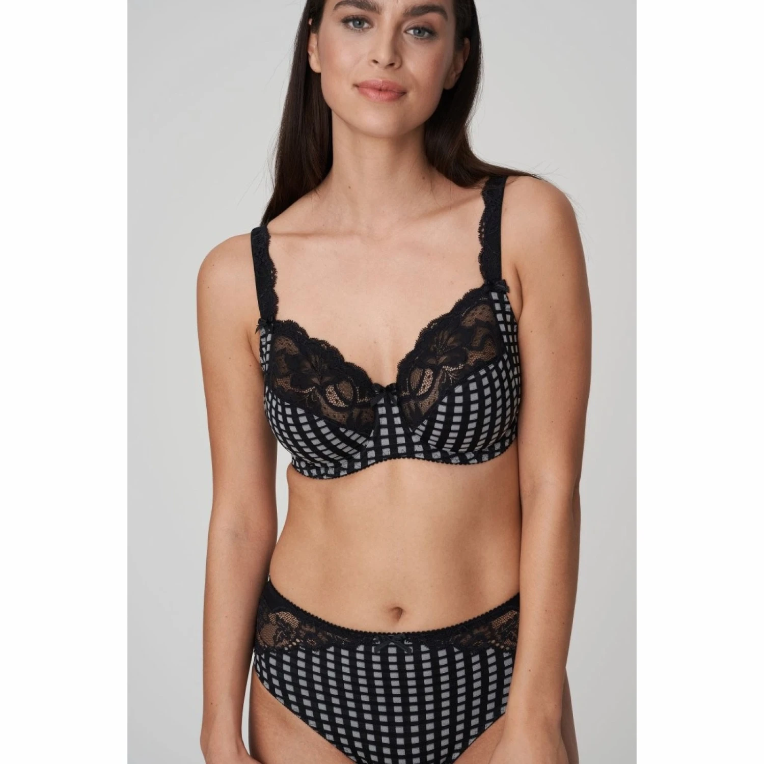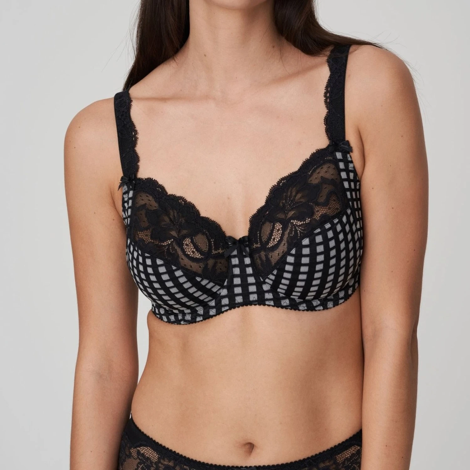 Le soutien-gorge à armatures Madison est orné de carreaux frais et de dentelle sensuelle au niveau du décolleté et de la bretelle.